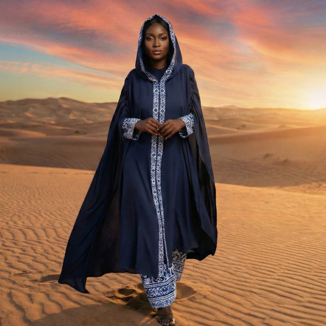 Abaya MARYAM Imprimé – Bleu